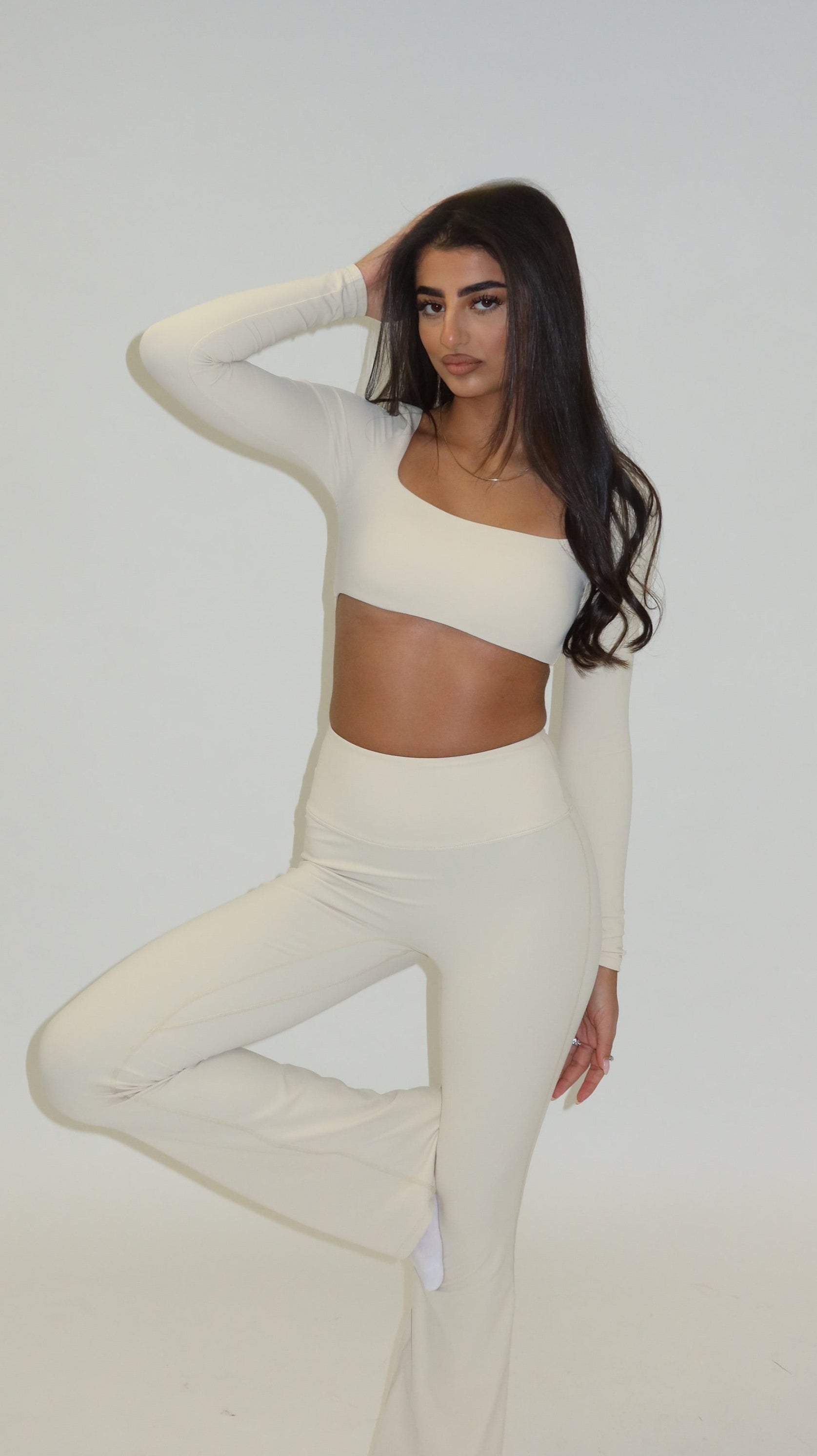 Un ensemble doux et lumineux, imaginé pour mettre en valeur la silhouette avec élégance tout en offrant une sensation de confort naturel.